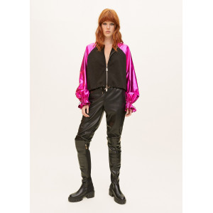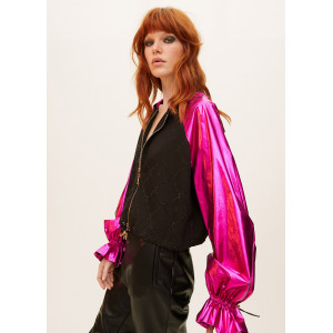 Sudadera combo Special Edition. Mangas y capucha con tejido técnico en color fucsia. Cierre con cremallera en dorado. Fantasía en strass color negro en frontal. Puños y bajos con tirador graduable. Prenda de máxima tendencia.