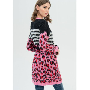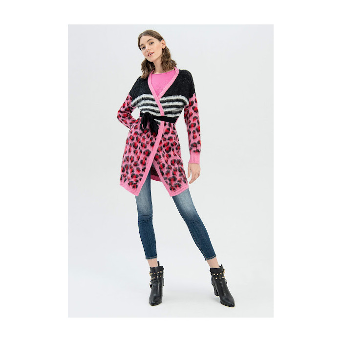 CARDIGAN OVER FIT, LONG, WITH MULTI COLOR JACQUARD